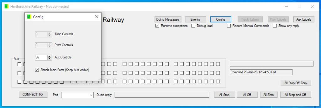 One can click the Config button and adjust the number of train, pwm or auxiliary controls and also shrink the GUI window to auxiliary only.